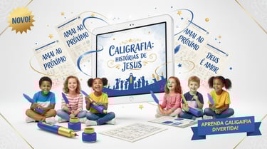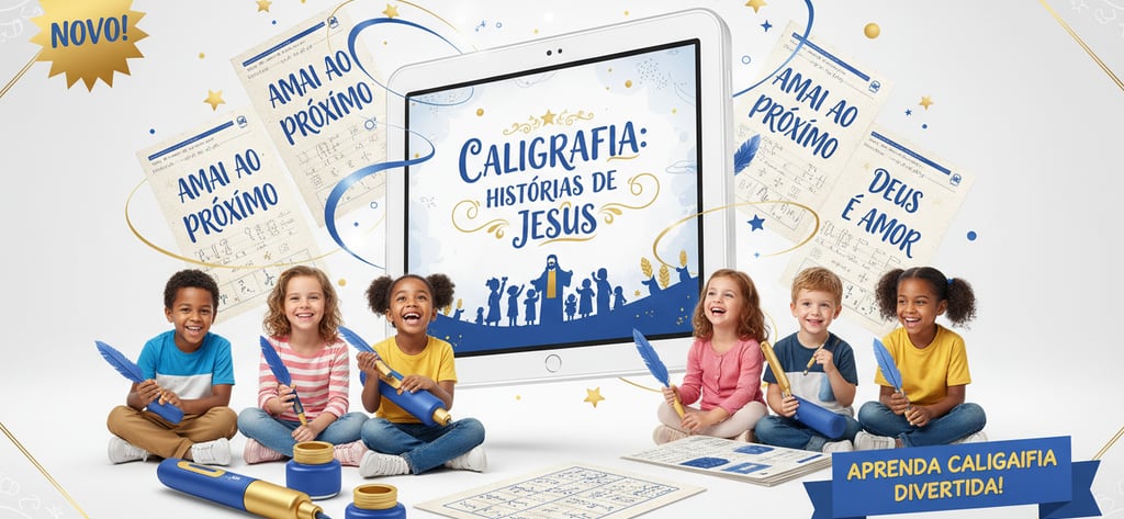 ✨ Nele, as crianças aprendem a escrever com letra bonita usando versículos e mensagens cristãs.