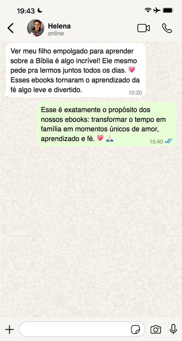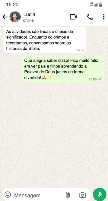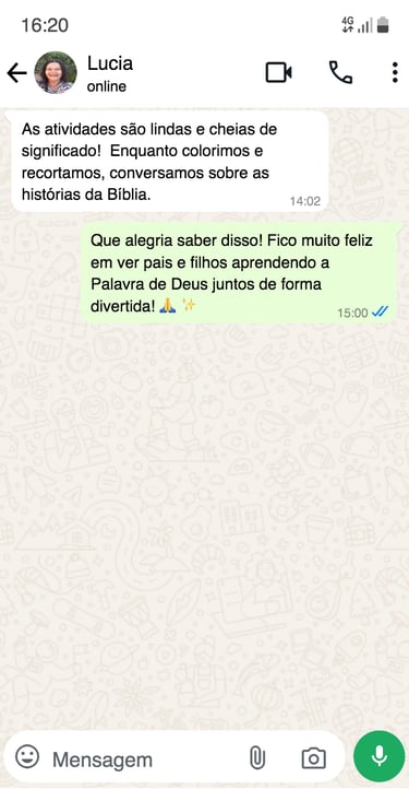 Com mais de 100 atividades bíblicas criadas por educadores cristãos, o kit ajuda pais e filhos a aprenderem juntos valores como amor, gratidão e fé, de forma leve e envolvente.
